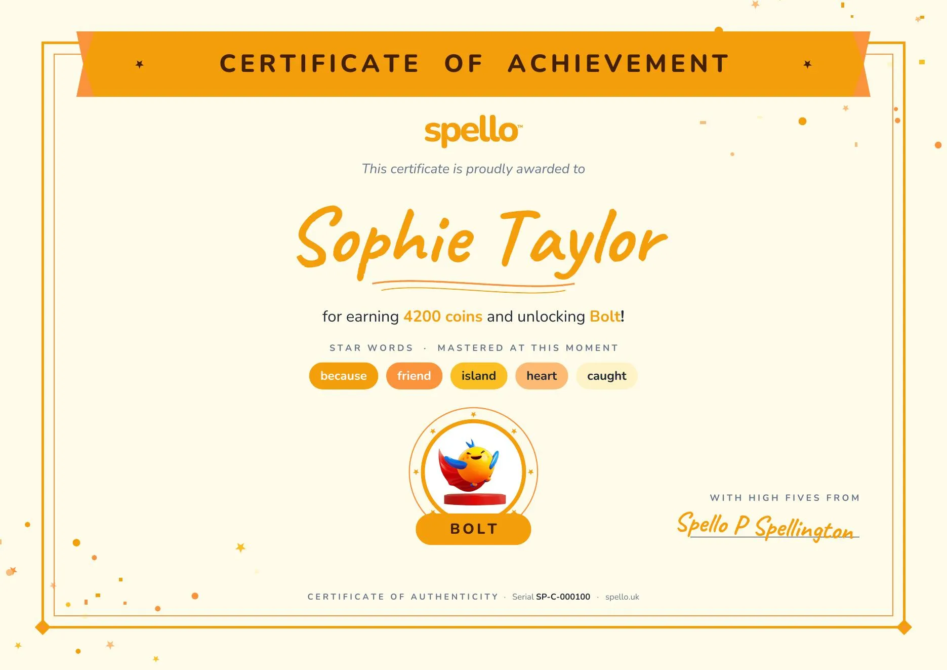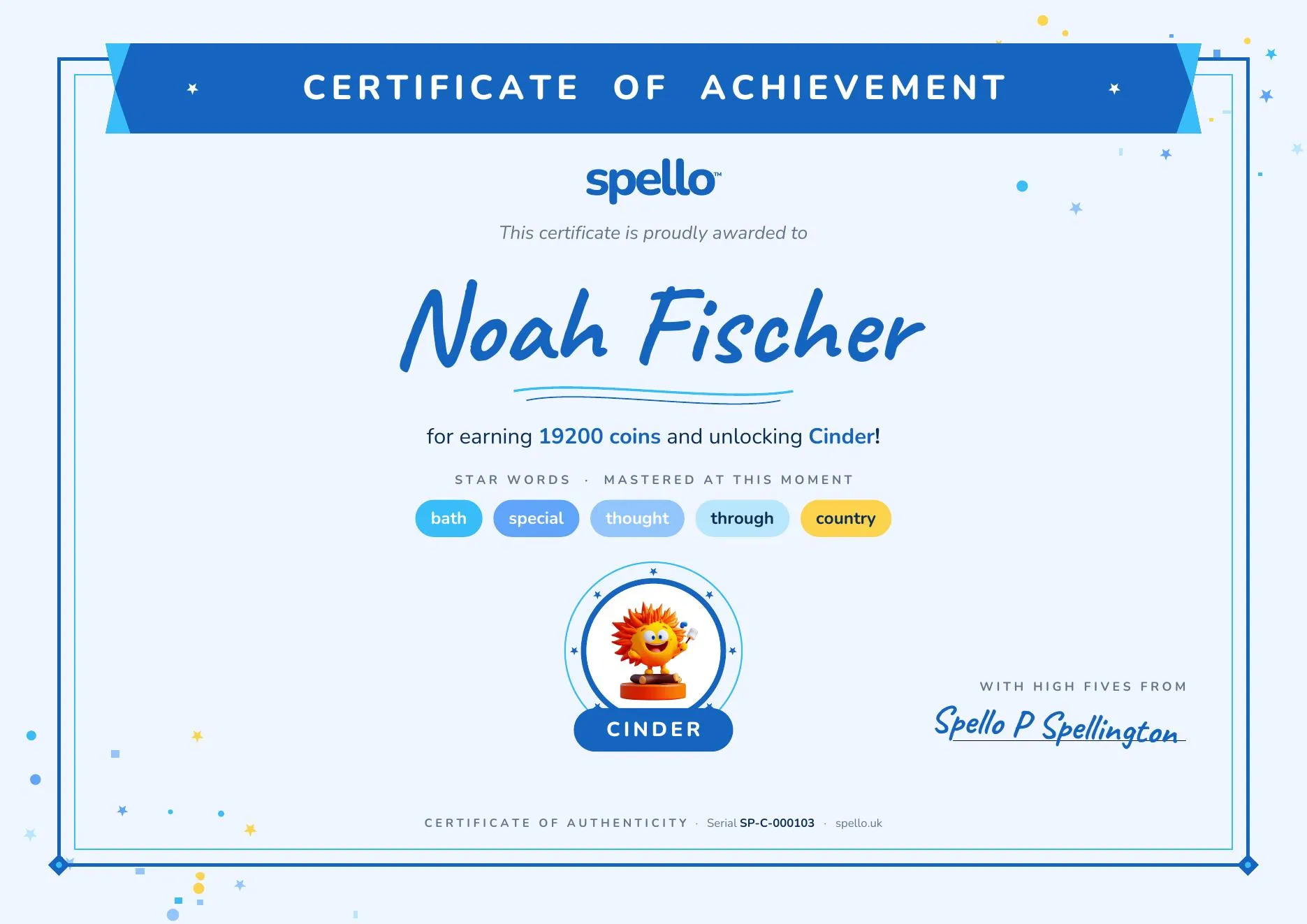 Cinder is a small, toasty fire that never goes out — and somehow always smells of marshmallows. They warm up tricky spellings until the letters come out crispy and just right.